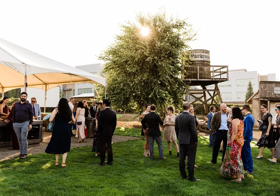 Friends and family looked on with happy tears in their eyes as Ryan and Gen shared their vows in front of a row of grape vines. The festivities continued outside of the big red barn where everyone enjoyed cocktail hour as the sun set.